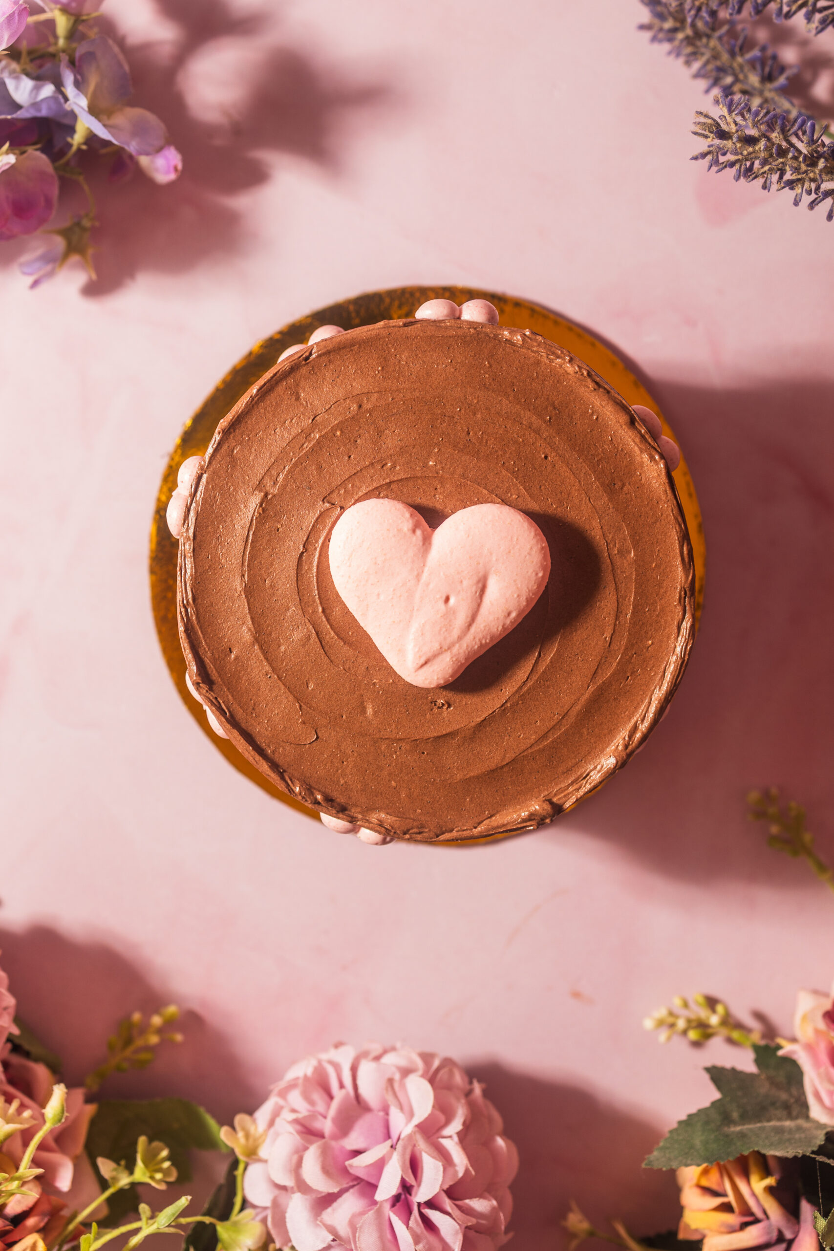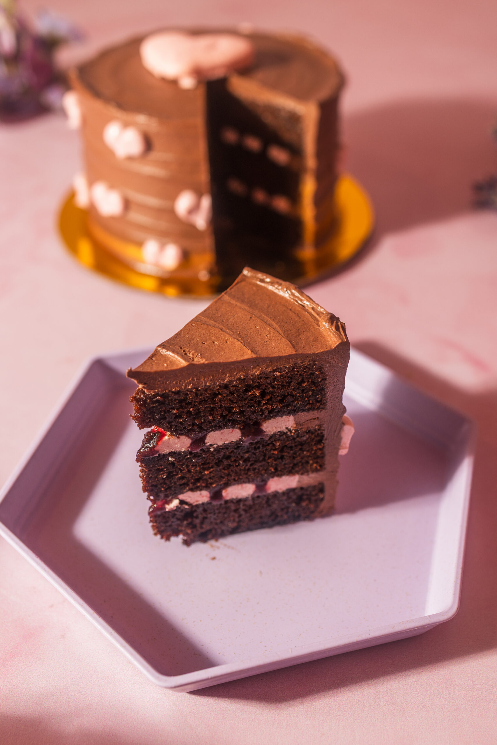 Cake de chocolate con mermelada de frutos rojos.